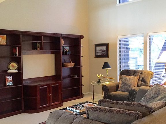 This wonderful condo has a two story view of the pond on a private cul d sac. Very open plan w/ 2 bedrooms up . Both bedrooms have private bathrooms. The master has a vaulted ceiling /balcony overlooking the pond and a private bath. The first floor Great Room is open to the dining area and kitchen and has a large fireplace. It is located across the street from Southern Hills Country Club and has monitored 24 hour security with a guard. The amenities of the condo association include a lovely large swimming pool, a nice clubhouse with a fireplace and kitchen, cable, Wi-Fi, and a tennis court. The specific condo for lease includes all appliances including a refrigerator, range/oven, washer/dryer, inside utility room and microwave oven. Two car attached garage. 2.5 bathrooms. HOA included in lease. Call or text to arrange showing. Shirley, Owner /Agent, One year lease.