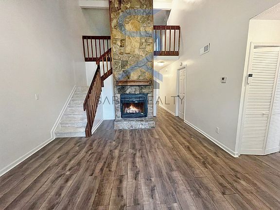 A cozy fireplace serves as the centerpiece of the living area, perfect for relaxing evenings and adding a touch of warmth and charm to the space.
