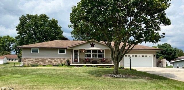 Stunning ranch home on a .44-acre lot in a quiet location situated on a cul-de-sac street. This property has been loved for many years. There are 3 bedrooms, 2 1/2 baths, a full finished walk-out lower level and a 2-car attached garage along with a 24x52 detached garage. There is a great open concept floor plan. The bright and airy living room has cathedral ceilings with a skylight and patio doors that lead out the private 12x21 deck. The kitchen includes all the appliances and has a separate eating area with a built-in bookcase. The master bedroom has a private half bath. The lower level has a large family room, the 2nd full bath, lots of storage, and an enclosed porch that leads out to the level back yard. There is a cement driveway with room for plenty of extra parking. The detached garage is heated and has a wood shop. The Generac whole house generator and out some outside patio furniture is included. This home has AEP electric, Frontier propane and Kimble trash service.