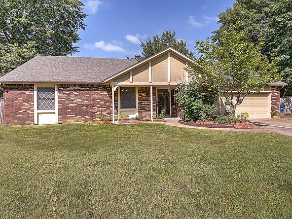 Welcome home to this charming one-level home in Darnaby Elementary district of Union Public Schools. Offering 2 separate spacious living areas, with brick fireplace and massive sky light bringing an abundance of natural light. Newer hardwood floors throughout. Updates include granite in the kitchen and bathrooms. Master suite is extra roomy and has a private bath with granite.