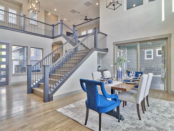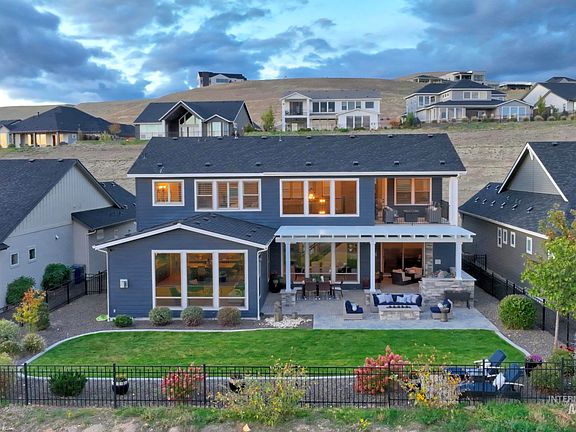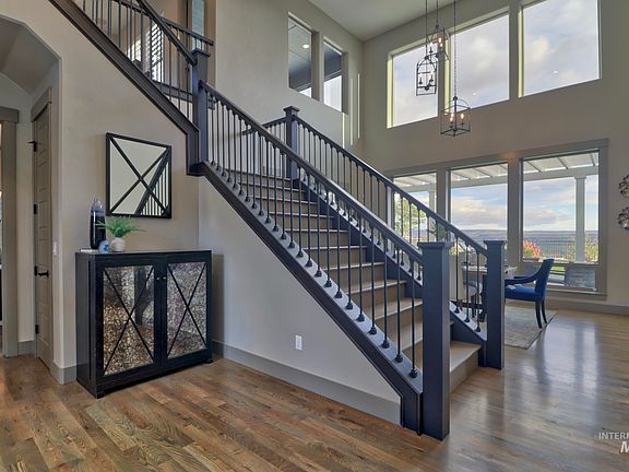 Experience Luxury living with incredible valley views in Harris North! This inviting home was built for entertaining with an impressive backyard featuring a full culinary center, large covered pergola/patio and beautiful outdoor fireplace. Guests are greeted by soaring ceilings with expansive windows that bring in abundance of natural light. The gourmet kitchen features a large quartz island, double oven, wine fridge, walk-in pantry and more. The master suite is a true getaway with a free-standing soaker tub, large walk-in shower and spacious walk-in closet. The main level guest suite provides great flexibility. Enjoy the upper-level balcony and take in breath-taking sunsets. This home has SO much to offer! See included Extras and Features list under docs tab. Just minutes from the Boise River Greenbelt, Bown Crossing, downtown Boise & world class foothill trails. Fiberoptic Internet available. BTVAI.