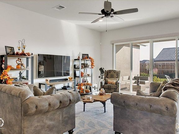 Exquisite 3-bedroom, 2-bathroom modern farmhouse situated on an ideal corner lot. This centrally located residence offers convenient proximity to Costco and Winco. Immaculate in condition, it boasts an open floor plan with tons of natural light. The beautifully landscaped backyard features numerous citrus fruit trees, a covered patio and a built-in outdoor kitchen area, perfect for entertaining. Smart home with Lutron lights throughout, Smart Lock Entry Door, electric blinds throughout, wireless thermostat, just to name a few. Upgrades include epoxied garage, glass shower door, and premium lighting fixtures in the home. The home has an assumable PPA solar system. This is a must see and wont last long. Digitally staged, and comes unfurnished.