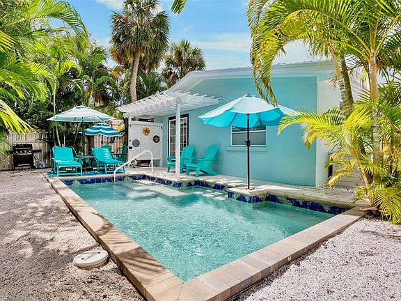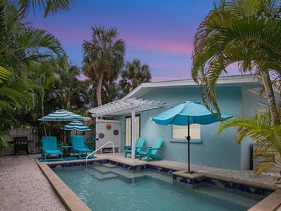 Weekly rental! Exceptional Investment Steps from Holmes Beach. Welcome to Blue Oasis, a fully renovated ground-level retreat just steps from Holmes Beach and the turquoise waters of the Gulf of Mexico. This stunning 2-bedroom, 2-bath home combines modern luxury with island charm. Featuring a versatile den with a pocket door for added privacy, it’s perfect for a home office or guest space. The den includes a stylish daybed with trundle, offering extra sleeping accommodations without sacrificing comfort or design. Every detail has been thoughtfully upgraded, including a new roof (Summer 2025), freshly finished walls, baseboards, doors, and paint throughout, plus custom closet organizers for added functionality. The kitchen and both bathrooms feature all-new soft-close cabinetry and fixtures, complemented by brand-new appliances—dishwasher, refrigerator, gas range/oven, and washer. Comfort is ensured with a new A/C (November 2024-mounted up from the ground), while the new pool pump with Pentair automation adds convenience and efficiency. The master bath boasts a completely redesigned shower with new tile and hardware, and the entire home is furnished with all-new furniture and décor, from beds, mattresses, and nightstands to a stylish sofa, chairs, dining set, and coastal accents. Outdoors, enjoy new patio furniture, umbrellas, lighting, and a perfect sized pool with optional spa jets plus a shed stocked with new beach chairs and a beach cart. Rinse off in the outdoor shower offering both hot and cold water. Additional upgrades include new TVs in every room, palm tree shutters, creating a turnkey property that’s ready to impress. With its prime location just a four-minute walk to the beach, easy access to shops and dining, and exceptional rental performance, Blue Oasis delivers a fantastic ROI and lifestyle appeal—perfect as a short-term rental, second home, or long-term investment in one of Florida’s most sought-after coastal markets. Make your move on this turnkey coastal gem today!