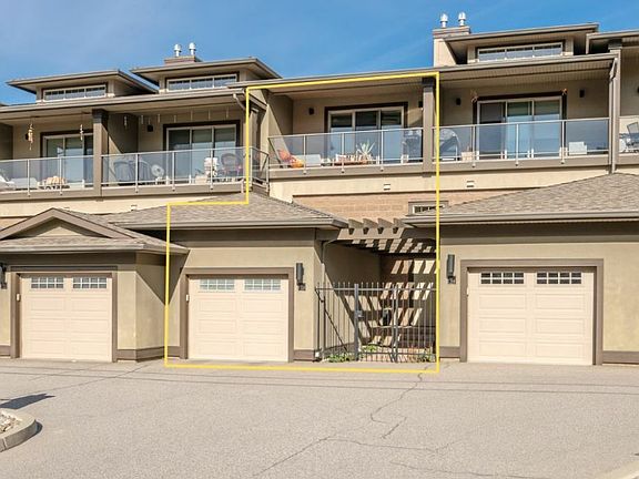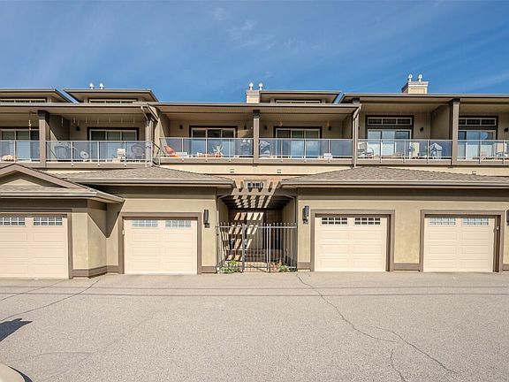 NO GST! Like new and move-in ready 1 bedroom + mezzanine with tall ceilings, pot lights, hardwood/tile flooring and quartz counters throughout, in suite laundry, custom shelving, new AC, and high end Fisher Paykel appliances. The unit has tons of parking with 2 garages and extra parking outside on the ground level; Heated, oversized 47 x 17 garage/workshop with high ceilings, 2 pc bathroom, and a spacious finished mezzanine above. Perfect for an office, second bedroom, craft room, lady/man cave or more! The second floor has a great open concept floor plan with an abundance of natural light, gas fireplace and large sliding doors to your cozy South facing covered deck with beautiful mountain, lake and vineyard views! Adjacent is your modern 2 tone kitchen with tile backsplash and plenty of cupboard and counter space. The spacious primary bedroom has a great mountain view and large walk-in closet with a custom closet organizer. The townhouse has a private secure entry and almost zero maintenance required! The complex has low strata fees, RV Sani dump on site, no age restrictions, and pets & rentals OK. Centrally located steps to Osoyoos Lake, short walk to town, restaurants and shopping. The perfect townhouse for all car/boat/RV enthusiasts or anyone who loves to lock and leave!
