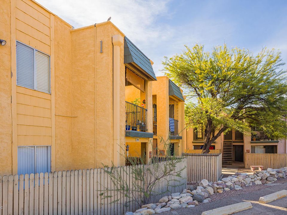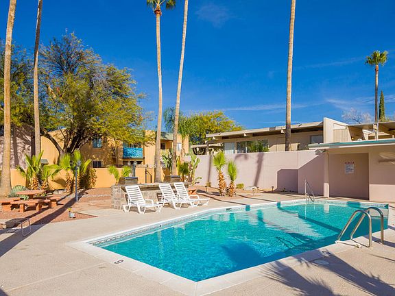 Stunning Granite One Bed/One Bath Condo Nestled in the Catalina Mountains. Tiled Floor Throughout, Granite Kitchen, Storage, Balcony Over Looking Lush Mature Desert Landscape Grounds and Lagoon Style Pool. Equal Housing Opportunity. Fort Lowell Realty & Property Management.