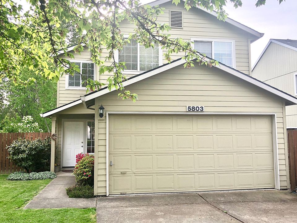 Well-maintained 2 story home with a large backyard that backs a beautiful tree setting. Updated kitchen with quartz countertops, soft- close maple cabinets, and new stainless steel appliances. Bathrooms all with new soft-close cabinets. Laminate floors throughout the downstairs. New carpet upstairs. Huge master bedroom with vaulted ceiling and walk-in closet. Central A/C. Perfect covered back deck and spacious yard for entertaining. Close to shopping, public transportation, Nike, and Intel. NO HOA! Will work with buyer's agent.