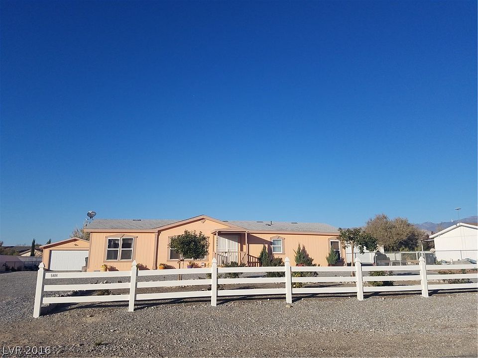 Great curb appeal with white split rail fence around front yard. 3 bedroom home with a nice floorplan. French doors lead to covered patio/porch and back yard with trees and plants. 2 Car detached garage. Well maintained and landscaped front and year yards. Nice Cottonwoods neighborhood in the south side of Pahrump.