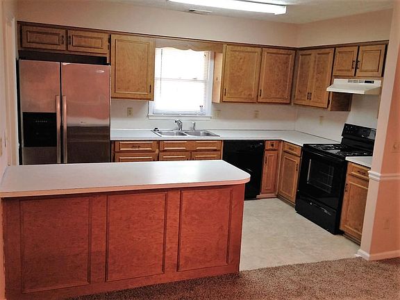 Living room with a fireplace. Dining area. Full kitchen. 2-car garage. Covered patio with fenced backyard. Property has lake access.