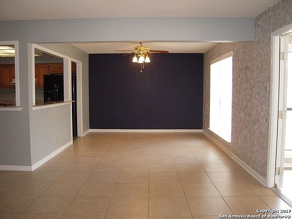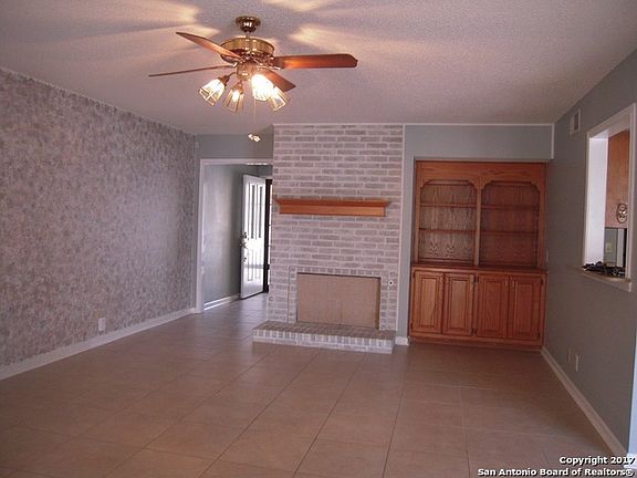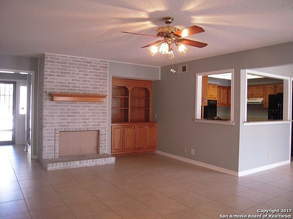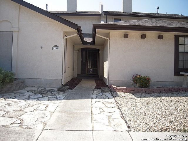 Pristine condition town home/garden home with master bedroom downstairs. Both bathrooms downstairs have been remolded. Entry, family room w/fireplace and Din. room have tile floor; owner has just installed beautiful wood flooring through the rest of home. Amble kit. w/new double ovens+ granite counters & Refrigerator. Florida room, flag stone patio w/electric retractable awning, oversized 2 car rear entry garage-low maintenance exterior-close to Ft Sam & Randolph AFB-- great home for young professionals or retired folks that want room for the grand kids