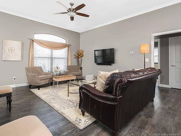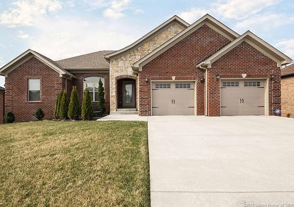 Spectacular summer sunsets await on the back deck overlooking rolling fields and Knobs views as a backdrop! So welcoming brick & stone ranch with finished walkout lower level is the perfect place for entertaining family & friends. Inviting extensive custom landscaping and accent lighting greet you and upon entering you immediately feel "at home" with the completely open gathering room providing the perfect blend of meal prep, dining & entertaining. Upgraded lighting illuminates the feel of today in the color palate of the home, gorgeous cabinetry, granite and engineered wood. The master suite boasts an exquisite mansard ceiling, stylish tiled shower, granite sinks & large walk in closet. Split BR plan has good sized BRs 2 & 3 and guest bath has beautiful tile flooring, granite & handy linen. The full walkout lower level offers wonderful entertainment space in the expansive family room, complete with an alcove (great area for your wine or coffee bar!), massive 4th bedroom with walk in closet, full tiled bath & huge unfinished storage area. You will LOVE the over sized 2 car garage which provides plenty of storage & accommodates larger vehicles. RETREAT to the fully fenced back yard where nature abounds - great evening cook outs while enjoying wide open spaces. This is NOT your typical subdivision home ... Seller is sister of listing agent. All meas & sf approx.