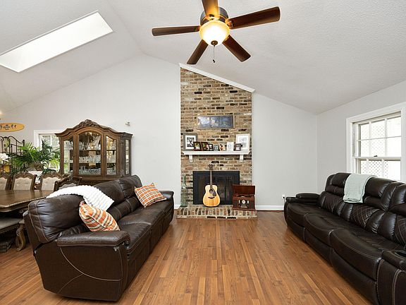 Nestled in the heart of North Raleigh in the tree lined Valley Estate neighborhood, this charming one-story home perched on a hill offers 3 bedrooms and 2 full baths, thoughtfully designed for comfort and accessibility. A spacious back deck and cozy front porch set the tone for relaxed living. Inside, vaulted ceilings and skylights fill the open layout with natural light. The spacious kitchen features gleaming granite countertops, stainless steel appliances, a built-in microwave, and convenient counter seating—perfect for casual meals or entertaining. The inviting living area showcases a brick-framed fireplace and elegant French doors leading to the back deck. Step outside to a private backyard oasis complete with an outdoor kitchen, ideal for gatherings. Mature trees provide shade and serenity, while a handy shed adds extra storage, with a wheelchair ramp allowing easy access. This cul-de-sac gem combines style, privacy and location, just minutes from all that Raleigh has to offer.