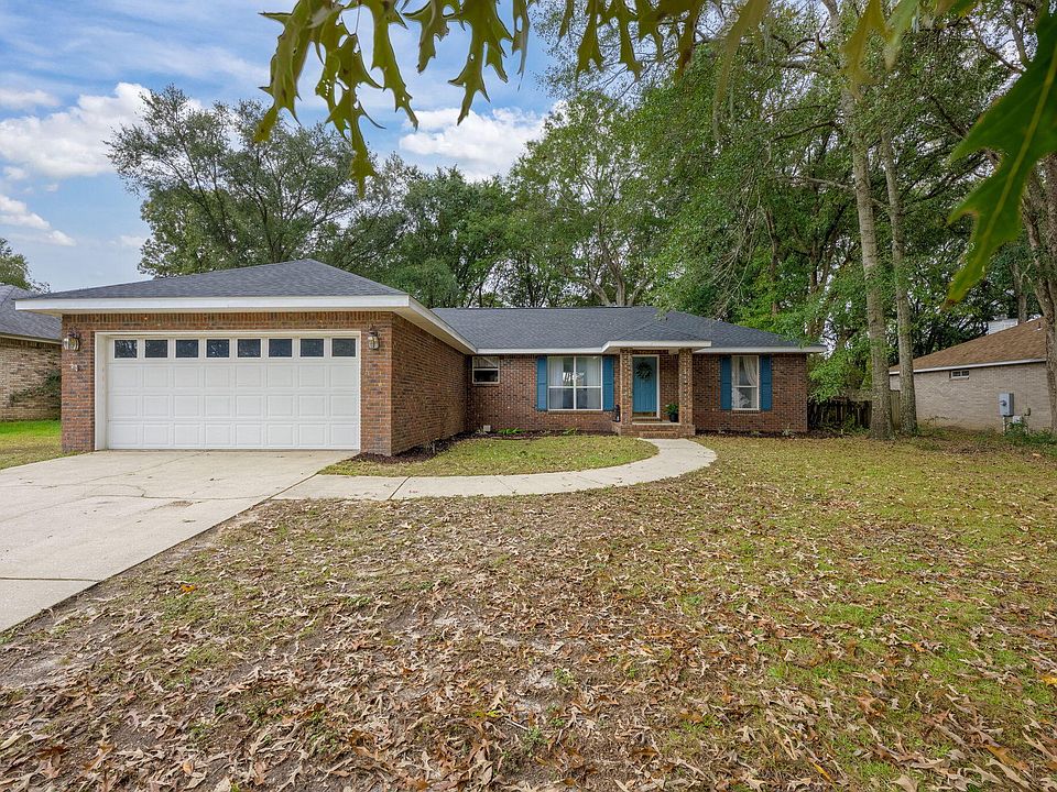 Welcome home to this fantastic 3 bedroom, 2 bath brick house on 1/3 acre in Crestview with a NEW roof. This split bedroom floor plan has a big kitchen, with white cabinets, a window over the sink, and a big breakfast bar for casual dining or entertaining. The kitchen has a pantry and is open to the dining room and spacious living area where you'll enjoy the view from the large windows which let in lots of natural light. The master bedroom has a walk in closet, and the en suite bathroom ALSO has a walk in closet! The master bedroom and living room each have access to the enclosed Florida room, which has a ceiling fan and is heated/cooled for your comfort, adding a second living area to enjoy year round; windows slide open to allow the fresh air in, or close them and enjoy air conditioning. The Florida room has a great view of the privacy fenced backyard where mature trees provide shade. This big backyard has a fire pit and you won't believe the amazing sunset views!