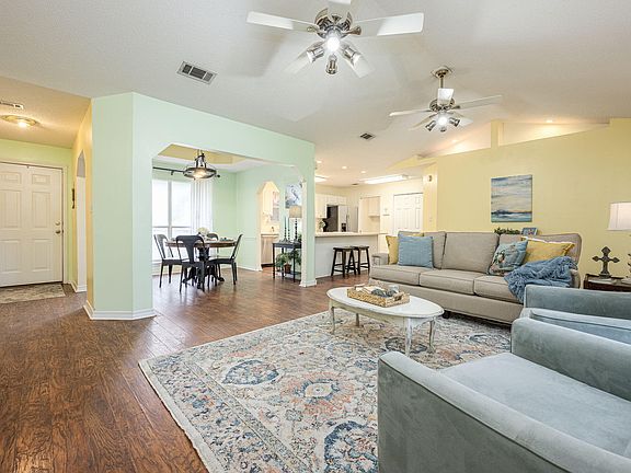 - Breakfast Bar, Vaulted Ceiling(s), Recessed Lighting, Pantry, Split Bedroom, Woodwork Painted, Bedroom, Florida Room, Kitchen, Living Room, Master Bathroom