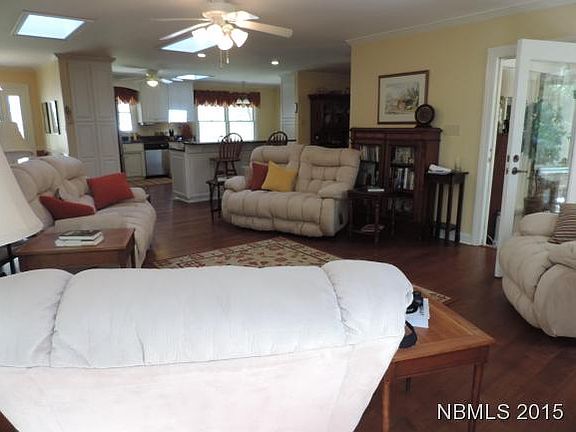 Immaculate home on double lot on cul-de-sac in award-winning golf/waterfront community in New Bern. Shared living space in home has been renovated to provide open floor plan. Several skylights provide additional natural light. Granite countertops and large island in renovated kitchen. Hickory and tile floors throughout. Spacious master suite. Separate laundry/mud room with sink and cabinets for storage off kitchen and garage. Enjoy the private setting from the wood deck. New HVAC unit 2 years ago. Sprinkler system and invisible pet fence. This is a gem of a house in a sylvan setting.