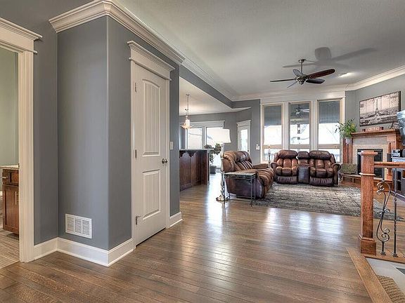 Coventry floor plan. Home sits up high and has amazing sun set views. All the extras in the home make it better than new! Gorgeous blinds, stained covered deck, extra trim throughout the home, soft corners, long tall windows, gorgeous grey hardwood flooring, sleek kitchen cabinets that are built to the ceiling. Open kitchen to family room makes this floorplan so desirable. Lower level has own living quarters including kitchen with pantry, laundry hook ups, and large bedroom with large walk in shower.