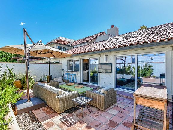 Spectacular spot in the heart of Scottsdale close to Fantastic Dining and Shopping, Talking Stick Casino, Spring Training Stadiums, Golf, and Art Fairs. Brand new as a rental. Luxury features and designer touches will draw you in, the locale makes you want to stay forever. Stunning, fully-furnished 2 bedroom/2 bath is beautifully designed w/ soaring, beamed ceilings, stone gas fireplace, custom kitchen w/ quartz counters, gas range, surround sound & more. Spacious ultra-comfortable master suite features a king bed, luxury bath, and access to private ''secret garden'' backyard. Bright and cheery second bedroom features a king bed and adjustable height executive desk. Enjoy outdoor entertaining with comfortable seating, patio heater, bar and TV. More. There is an attached two car garage. Private laundry in the home. WiFi. Newly remodeled community pool, spa, workout room and more in this gated location. This home's location is vibrant and a desirable destination for many reasons, including: Location: Situated in the heart of Scottsdale, between Old Town and Gainey Ranch, conveniently located and easily accessible to all parts of the Phoenix area. Dining: It boasts a wide range of dining options close by, from coffee houses and casual cafes to fine dining restaurants and resort dining. Entertainment: There's plenty to do in Scottsdale, with live music, sporting and cultural events, hiking, and other outdoor activities available. Shopping: It is a shopper's paradise with Scottsdale Fashion Square, Kierland Commons, Scottsdale Quarter, boutique shops, art galleries, and major retailers all in close proximity. History: Old Town Scottsdale and Paradise Valley have a rich history, with beautiful architecture and a charming, small-town feel.