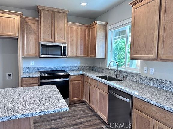 newly built by local builder, Anderson Builders Corporation, who are known for their quality homes. As you step inside, you will love the natural lighting, open floor plan, and high ceilings with tons of storage. The heart of the house lies in its delightful kitchen, with stainless steel appliances, granite countertops, a farmhouse sink, and a pantry. The home features, ceiling fans in the bedrooms and family room, mini-split heating and air conditioning, luxury vinyl plank flooring, and mini-blind window coverings. The bedrooms are spacious and the primary bedroom has its own bathroom with a walk-in shower. The oversized 2-car garage is fully finished with laundry facilities and a utility sink at the back of the garage. There is OWNED solar on the home, fire sprinklers for additional safety, and a good-sized, flat, fenced backyard. The home also has RV access with RV hookups and an RV gate to the backyard. The home comes with a 1 year fit & finish warranty from the seller. Don't miss this opportunity to buy this beautifully built, new home! The seller is only considering owner-occupied buyers.