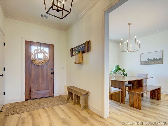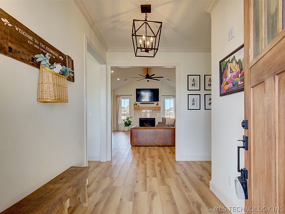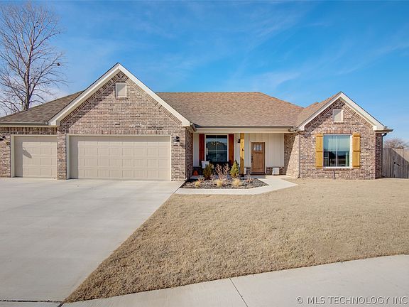Built in 2021! Gorgeous, move-in-ready, 1 story home on over 1/3 acre cul-de-sac lot! Split plan: 4 bedrooms, 3 full baths, large breakfast nook, office or formal dining and 3 car garage. Custom finishes throughout! Sprinkler system! Large front porch is big enough for a swing! Coat closet at front entry. LVT Flooring throughout main areas. Vaulted/Beamed ceilings in living room. Gas fireplace. Quartz countertops throughout entire home (kitchen, laundry and baths!) Kitchen has ample cabinets, farmhouse sink, stainless steel appliances, gas stove and more! The Pantry is the size of a walk-in closet and located straight ahead as you walk in from the garage (perfect for dropping groceries!) 2 drop zones are located near entry from garage as well. Good sized laundry room with cabinets and hanging space. The Primary Bedroom is oversized and so is the primary walk-in closet! The primary bathroom has two vanities, a soaking tub and a large shower tiled from top to bottom. The hall bathroom is a full bath with stand alone shower. The 3rd and 4th bedrooms are on the opposite side of the house. The back porch is extra large and overlooks a good sized backyard with full fence. Close proximity to neighborhood amenities, which include a clubroom/fitness center, swimming pool, and fishing pond. Sooner Park is also nearby! Convenient to shopping, schools, gas, etc