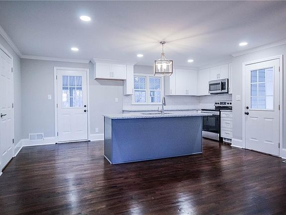 - Kitchen Features: View to Family Room, Kitchen Island, Pantry Walk-In, Solid Surface Counters, Cabinets White
