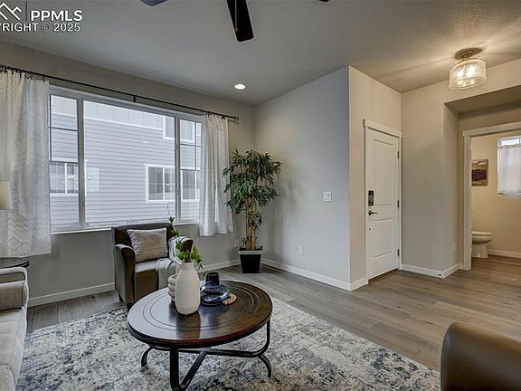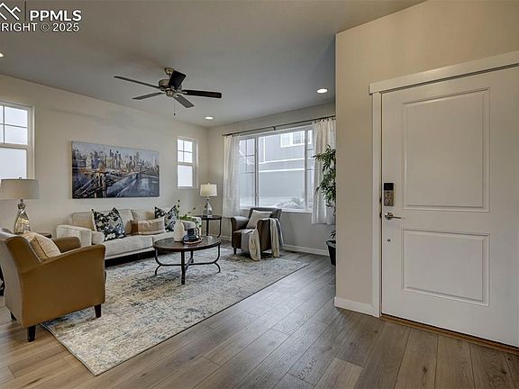 Welcome to your nearly new Dream Home in the desirable Foursquare Collection at Pathways! This stunning property,situated on a premium corner lot,offers the perfect blend of modern living and low-maintenance convenience.The xeriscaped landscaping not only conserves water but also provides a beautiful backdrop for outdoor relaxation.As you enter,you'll be greeted by a spacious great room that seamlessly combines the Living Room,Dining Room,and Kitchen, creating an inviting atmosphere for gatherings and everyday living. The kitchen is a chef's dream, featuring a large island, stainless steel appliances, a gas range, and a pantry for all your culinary needs. Walk out from the dining room to your Private Fenced Back Patio, complete with a gas line for your BBQ, perfect for summer cookouts and entertaining friends.Upstairs, you'll find TWO Primary Bedroom Ensuites, both with spacious Walk-In Closets and luxurious bathrooms featuring double vanities and large floor to ceiling tiled showers, providing comfort and privacy. A bright Loft Area with Mountain Views offers a versatile space for a home office, play area, or relaxation spot, while the conveniently located laundry room adds to the home's functional design.With a modern, light, and bright feel, this home features durable and stylish hardwood laminate flooring throughout the main level, complemented by elegant quartz countertops in the kitchen and bathrooms.Numerous upgrades and "SMART" features throughout the home enhance its appeal and ensure a sophisticated living experience.Located just minutes away from hospitals,restaurants,shopping, and entertainment, this home presents an ideal location for easy access to everything you need. Plus, with a short commute to USAFA and Peterson Space Force, this property is perfect for military personnel and civilians alike.Don’t miss the opportunity to make this beautiful property your own! Experience the best of comfortable living and stunning scenery in this exceptional home.