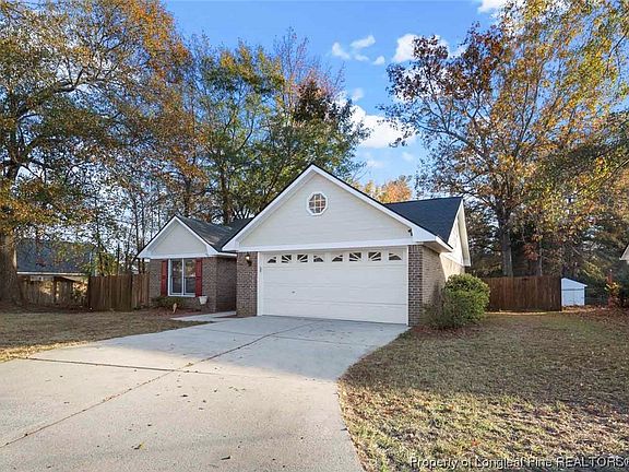 This lovely home is centrally located on over a half acre lot between Fayetteville and Hope Mills. Through the foyer, enter into a spacious living room with a grand cathedral ceiling and open to the dining area and kitchen. Fresh paint inside and out, laminate flooring in the kitchen/dining and great room, tile in the bathrooms, new carpet, new plumbing and light fixtures plus a brand new appliance package and a roof less than 5 years old. Two car garage, central electric heat and air, fresh paint inside and out, outside covered storage, large concrete patio, front and back storm doors, decorative crown molding and the master bedroom features a huge walk in closet! A must see!