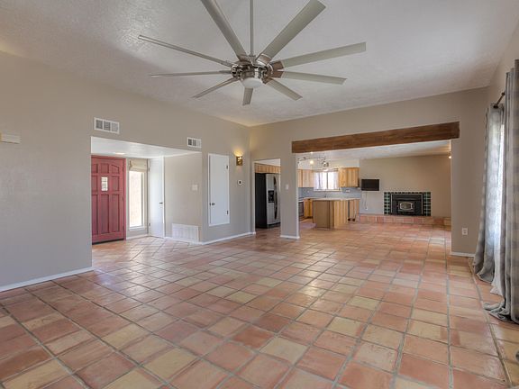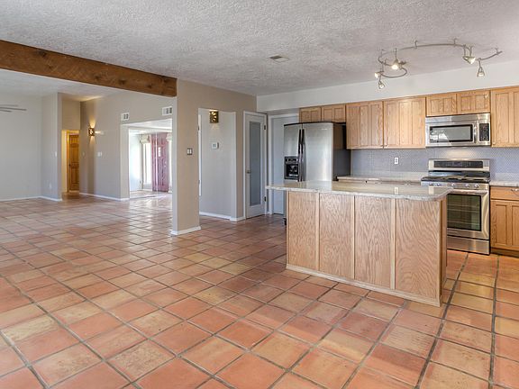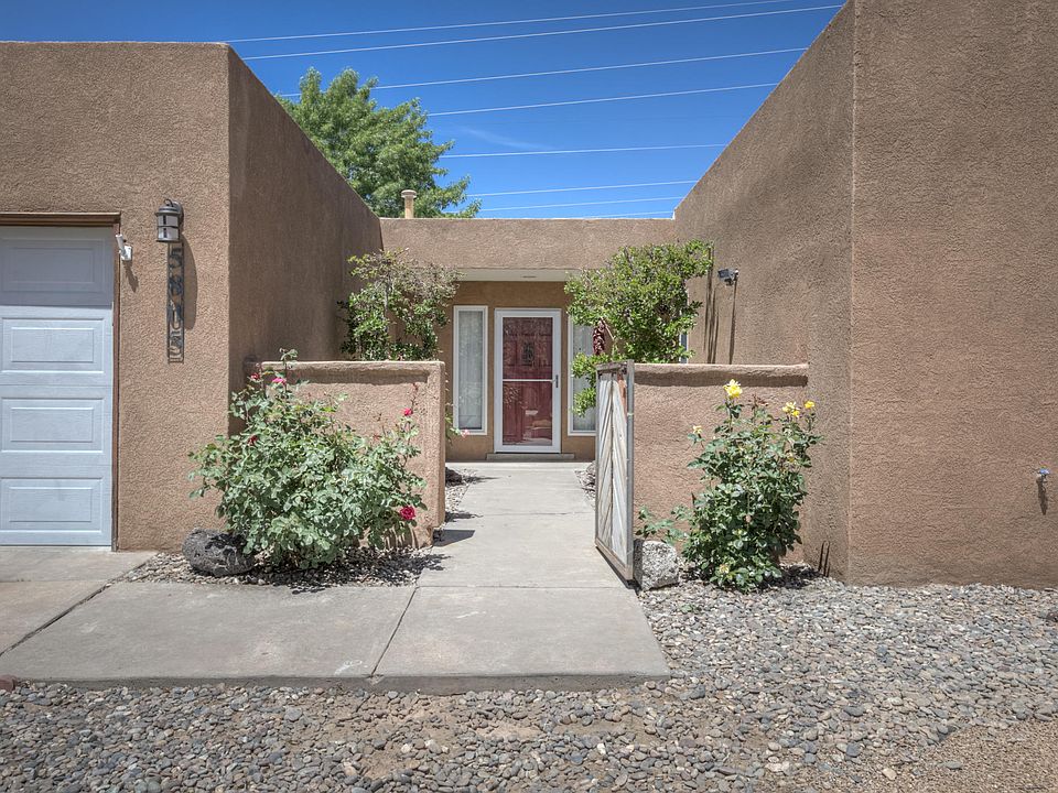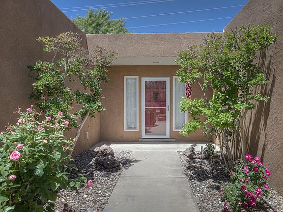 Enter this charming southwest pueblo home through an enclosed private courtyard. Upon entering, notice the beautiful saltillo tile floors & raised ceilings in the airy living area w/picture windows framing the landscaped backyard. Open living concept flows to the formal dining and kitchen. Bright kitchen is fully updated w/custom cabinetry, granite countertops, SS appliances, an island & large porcelain undermount sink. Be cozy by the fireplace in the dining that leads to the backyard through sliding glass Pella doors. Master suite has a walk in closet & newly remodeled shower w/custom features. Enjoy outdoor living w/ a covered deck, stamped concrete, turf lawn, and a concrete bench with fire pit. Custom private block wall and pedestrian access to walking trails complete the backyard.