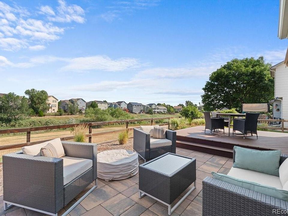 On the main level, a cozy fireplace adds warmth, and sliding doors lead to a walk-out deck and spacious paver patio—ideal for entertaining or relaxing while taking in partial mountain views and peaceful open space. You’ll also enjoy direct access to the Brantner Gulch trail system right from your backyard. For added comfort, the premium SunSetter retractable power awning provides shade at the touch of a button.