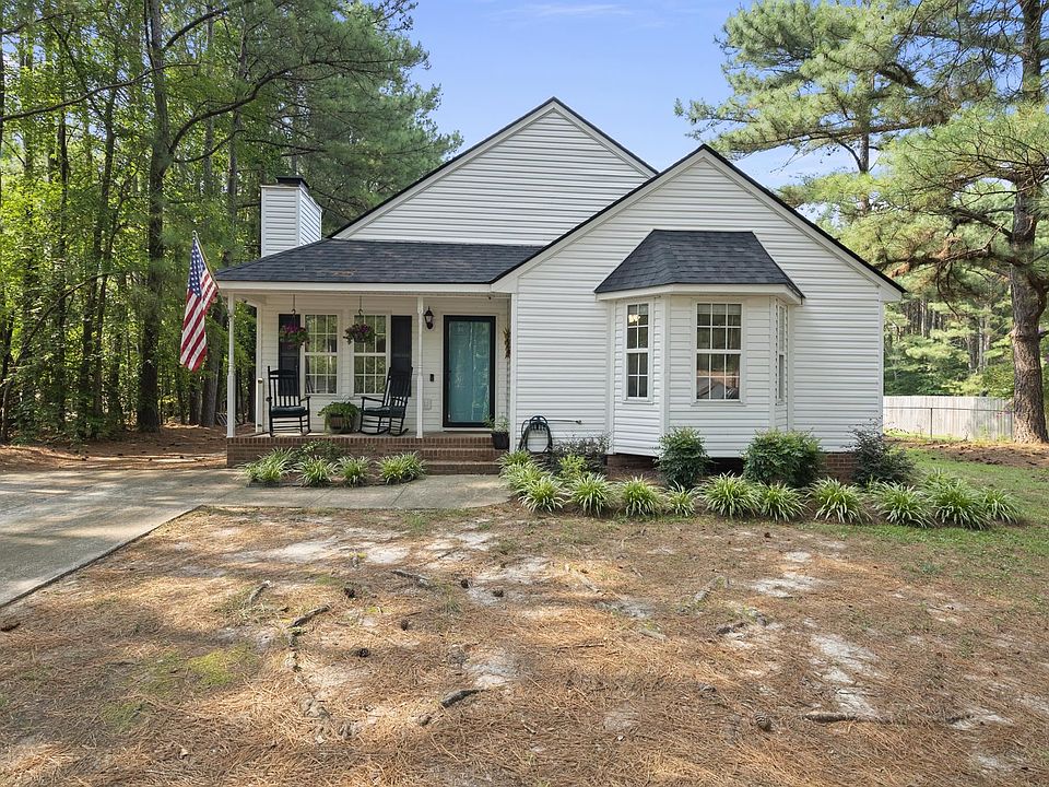 This charming 3 bed, 2 bath ranch home is ideally located just minutes from Wake Forest and downtown Youngsville providing easy access to urban conveniences while maintaining a peaceful atmosphere. Family room features gas log fireplace and cathedral ceiling. Recently upgraded with a brand-new roof, lvp flooring, and interior paint. Situated on over an acre lot without the burden of an HOA. Detached garage provides ample storage.