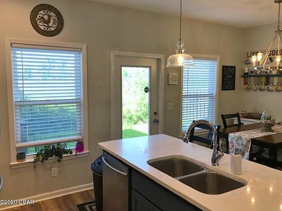 This coastal-inspired cottage immediately sets the stage for relaxation with its beautiful, watercolor-splashed front door! The spacious, open-concept floorplan is perfect for entertaining family & friends! Features & upgrades include: Metal roof (2019)...Quartz countertops...Kitchen island with Breakfast bar...Luxury vinyl flooring-stunning & durable...Sleek, Shaker-style cabinetry...Soothing grey palette...Conmore-style flat-panel interior doors...Custom lighting...Brushed nickel finishes...Timber-frame architectural accents! Truly charming and well-constructed...Still standing after Hurricane Michael! Only minutes to Tyndall AFB!