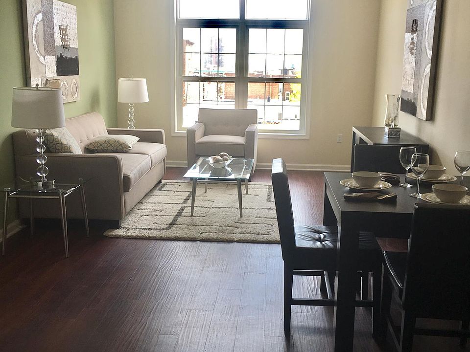 NO FEE Rental Beautiful 2 bedroom 2 bath new apartment. Hardwood floors throughout, granite countertops, washer/dryer in unit, stainless steel GE appliances PLUS 1 FREE INDOOR PARKING SPOT.