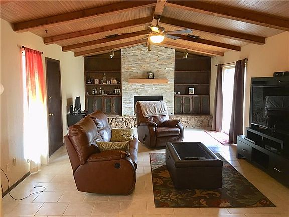 Lovely remodel! Large family room with builtins, beamed/wood ceiling, rock fireplace-gorgeous! Kitchen has granite countertops, stainless appliances, large dining space. Bathroom remodeled also! Large shed in back. Great neighborhood with park close by-Putnam City Schools!