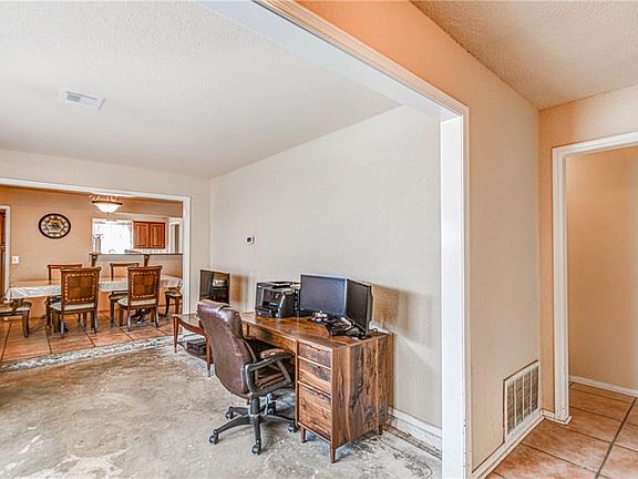 This home is sure to fit your needs! The front door sits within a courtyard for added privacy and decor. Inside you find a formal dining and second living area with lots of natural light. The large living room features a brick fireplace with built-in shelving and easy to clean tile flooring. The long kitchen features granite countertops and tons of cabinetry. Master suite includes a private en suite with double vanities and walk in shower. In the back yard you will find an in ground storm shelter for added safety. With a convenient half bath, laundry room, and four full bedrooms this home has it all!