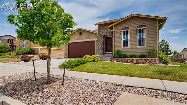 This beautiful ranch-style home sits on a corner lot in Wolf Ranch, just a short distance to the rec center & pool, multiple parks (including dog park), and award-winning District 20 schools.Enter the spacious home to an entryway with beautiful hardwood floors and newly carpeted formal living and dining rooms. As you continue on through the main level, you're greeted by soaring vaulted ceilings in the family room and kitchen.The kitchen includes an oversized island, a 5x5 butler's pantry/coffee bar, a walk-in pantry, all stainless steel appliances, and a breakfast nook that walks out to a 13'x7' covered patio. Open to the kitchen is an oversized family room with a gas fireplace and brand new carpet.This move-in-ready home also has a highly desirablemain level master suite.The master bedroom has new carpet, coffered ceilings, a walk-in closet, and french doors that lead out to a stamped concrete patio.The attached 5-piece master bathroom has separate vanities, a walk-in shower, and a luxurious soaking tub. BONUS - Connected to the master bathroom is a 10'x11' bonus room that could be used as an office, nursery, exercise room, or incrediblewalk-in closet! As you finish taking in the rest of the main level (Powder room! Main level laundry! Stonework around the fireplace! Air conditioning!), make your way down to the finished basement.You'll find a large rec room/2nd family room, a 3rd bathroom, and three generously-sized bedrooms. The utility room includes a radon mitigation system, sump pump, humidifier, furnace (replaced in 2015), and water heater (replaced in 2019). There's plenty of parking and storage in the spacious three-car tandem garage. Enjoy the mountain views while entertaining on the two patios in the beautifully landscaped backyard. The exterior was repainted less than two years ago and is in excellent condition. This exquisite home in a highly-coveted neighborhood is sure to check all your boxes, so don't delay!
