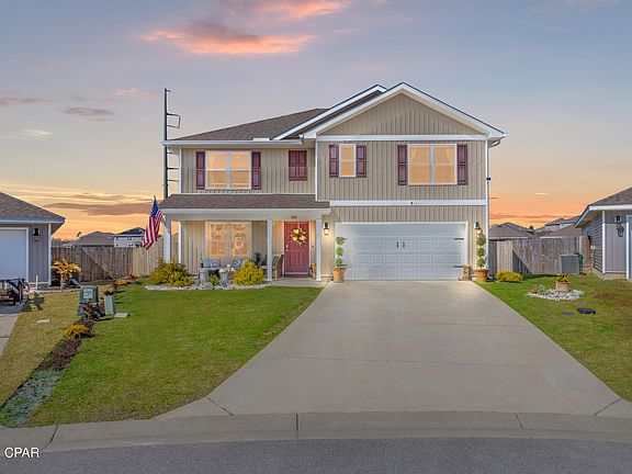 This outstanding property, constructed in 2021, boasts 5 bedrooms, 3 bathrooms, and nestled in the highly coveted Barrett's Park community of Panama City, FL, conveniently situated just off Hwy 231. The residence features an inground saltwater pool, while the fully fenced backyard showcases an irrigation system, fruit trees, and a warm ambience, ideal for entertaining or relaxation around the pool. A spacious upstairs area provides an additional living room or bedroom option, offering the perfect blend of comfort and versatility. The kitchen is equipped with stainless steel appliances, a large island, and a walk-in pantry. Spacious in-suite and convenient location at the end of a quiet cul-de-sac afford peace, privacy, and minimal traffic. Whether seeking a primary residence, a vacation retreat, or an investment opportunity, this property fulfills every requirement. Located just minutes from dining, shopping, and entertainment options. Recent upgrades include fresh paint, cabinet pulls, window treatments, ceiling fans, a touchless kitchen faucet, a finished garage, and a security system, with additional upgrades forthcoming. Furniture can be purchased in addition