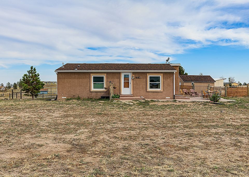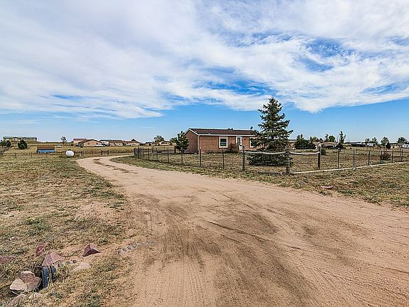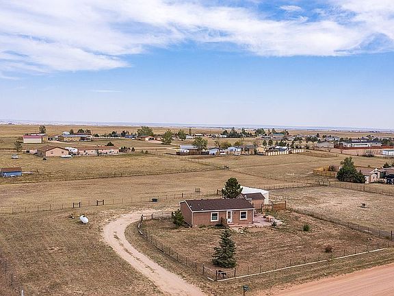 Here is your little house on the prairie! So many wonderful extras. New interior doors and trim, fresh paint, laminate flooring throughout The kitchen has tile counters and tumbled travertine backsplash. Special extras, tankless hot water heater, HUGE custom stamped concrete patio with custom concrete fire pit, stucco exterior, amazing views of Pike Peak! Fenced and crossed fenced, loafing shed for horses, storage shed, wonderful home! New roof, triple pane windows, great home! See show agent remarks.