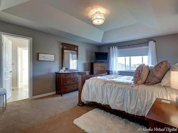 This home has it all! 5 beds, 4 up & 1 on the main level (w/full bath). Bonus room or possible 6th bed up. Gorgeous, open kitchen with tons of counter space & large breakfast bar. Beautiful master suite with a separate tub! A gardeners backyard: south facing & has a shed! Large, clean 3-car garage with storage cabinets & work bench. RV pad, mountain views & perfect location by Kincaid Park.
