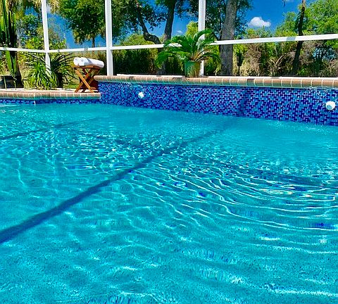 - Pool features: Auto Cleaner, Gunite, In Ground, Screen Enclosure, Lighting, Solar Cover