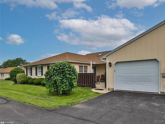 OP#N HOUSE, SUNDAY, JULY 23rd from 1pm to 4PM! Welcome to 5806 Burning Tree Lane, a fabulous 2 bedroom 2 full bath condo in ever popular East Penn’s Fairways at Brookside. From the moment you enter the 19x13 private patio with working hot tub, you know you’re home. The open concept great room with skylights and cathedral ceiling is an open book. The well designed kitchen with eating bar adds to the convenience of this home. The living room sits quietly off to the corner of the home while the two bedrooms (the master with walk in closet and en suite) and second bedroom and full bath complete the living areas of the home. Great storage throughout including garage, attic, two linen closets, pantry and laundry room cabinets. And the community amenities are the best! Monthly condo fee covers landscaping, grass, snow, exterior maintenance, pool, tennis courts and clubhouse. Come see this terrific home today!