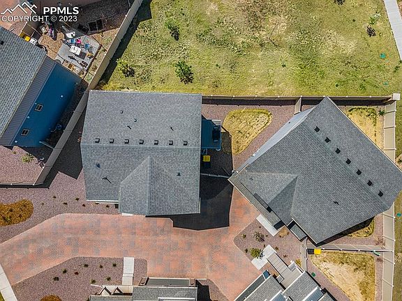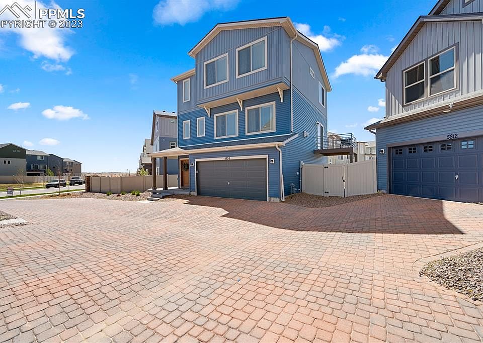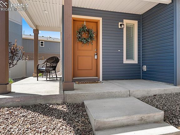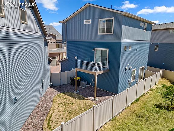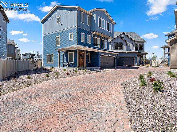 Experience easy living in this stunning modern home located in the highly sought-after Banning Lewis Ranch. With low maintenance features and wood laminate flooring on the main and second floor living spaces, this home offers the perfect combination of style and convenience. Step into the main level and you'll immediately notice the open concept Great Room and dining space. From here, you can walk out to a fully fenced backyard that boasts gorgeous landscaping and a convenient sprinkler system. Perfect for entertaining, the deck is the ideal spot for grilling and enjoying the outdoors. The expansive kitchen is a chef's dream, complete with an ex-large island, loads of cabinets, granite countertops, and a pantry. The living room is a true oasis, connecting seamlessly to the outdoors with its walk-out deck. On the third level, you'll find a roomy laundry room, spacious bedrooms, and the owner's suite with an attached bathroom and large walk-in closet. From the upper level, you'll enjoy stunning views that will take your breath away. Additional features of this home include air conditioning, a corner lot location in a cul-de-sac, and easy access to the Banning Lewis Ranch community. With its exceptional amenities, the Banning Lewis Ranch community has something for everyone. Take advantage of the K-8 school Banning Lewis Ranch Academy, the Community Center with 24-hour fitness room, and the outdoor Jr. Olympic heated pool. Enjoy the splash park, tennis courts, and over 65 acres of hiking trails and parks, all just moments from your doorstep. In summary, this modern home in Banning Lewis Ranch offers easy living, beautiful views, and access to top-notch community amenities, making it the perfect place to call home.