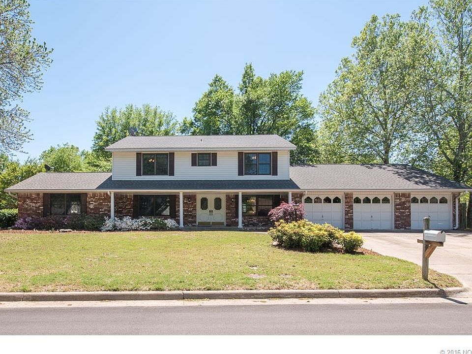 Spacious home in Sun Meadow, Jenks Schools. 5 bedrooms, 3.5 baths, 3 living, 3 car garage w/workshop + H/A in 1 garage. 4 beds up w/1 bed and full bath down. New interior paint, newer carpet. Approx .5 acres. Corner lot.