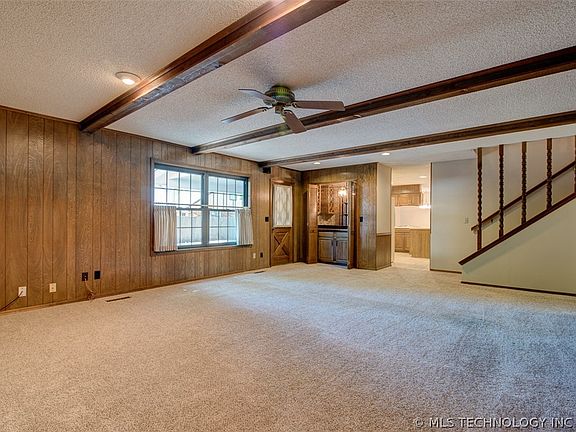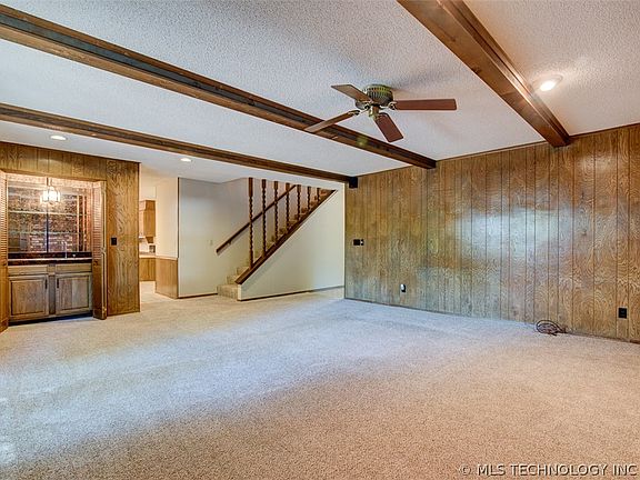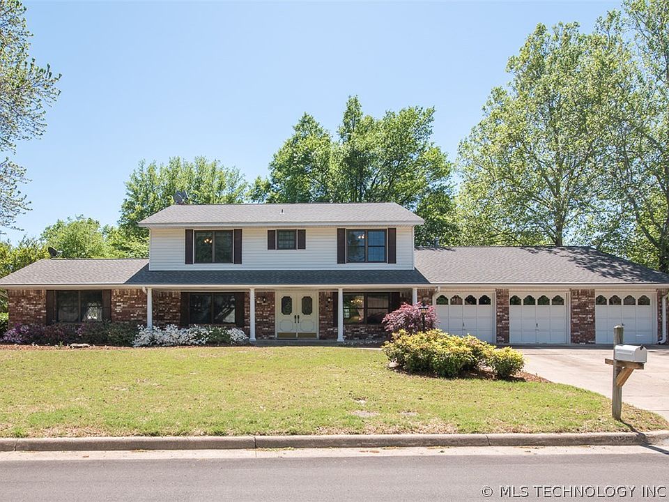 Spacious home in Sun Meadow, Jenks Schools. 5 bedrooms, 3.5 baths, 3 living, 3 car garage w/workshop + H/A in 1 garage. 4 beds up w/1 bed and full bath down. New interior paint, newer carpet. Approx .5 acres. Corner lot.
