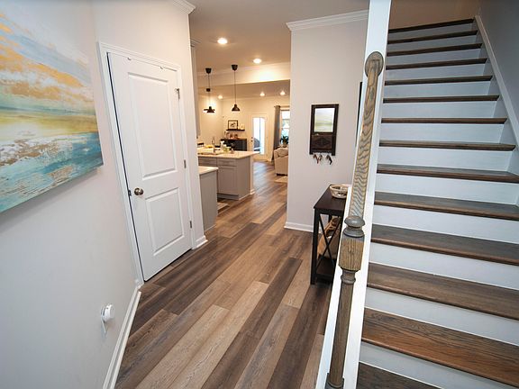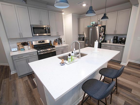 Move-in ready. Almost new, 2-story townhome. 3-bedrooms upstairs with loft area, 2.5-bathrooms, 2-car garage with level 2 EV charger. Bright and open 1st floor. Kitchen with island, quartz countertops, tiled backsplash and GE stainless appliances. Enhanced 5' vinyl plank throughout 1st floor. Screened porch and fenced backyard. Washer, dryer and refrigerator convey. Amenities include community pool, clubhouse and fitness center as well as a neighborhood coffee shop, brewery and more. Great location with easy access to401 and 540. RDU 20 min, Downtown Raleigh 15 min, Downtown Durham 30 min. $1,500 towards closing w/ preferred lender.