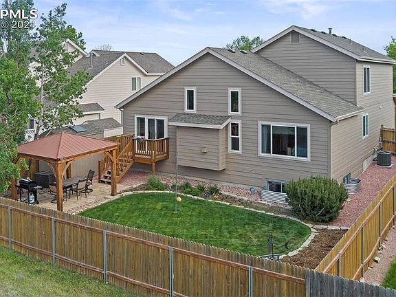 Welcome to beautiful Colorado Springs, where exceptional living meets unparalleled convenience. Nestled in the Stetson Hills neighborhood, this one-owner, meticulously maintained home offers 3,764 sq. ft. of premium living space, featuring 6 beds, 4 baths and a 2 car attached garage. The open-concept layout with vaulted ceilings seamlessly connects the living, dining, and kitchen areas, creating an ideal space for entertaining and daily living. The kitchen boasts modern appliances and plenty of counter space, perfect for culinary adventures and family meals. Enjoy cozy evenings by the fire in the spacious living room or casual meals in the inviting breakfast nook. Step outside to enjoy your mornings on the beautiful Trex deck or under the charming gazebo overlooking the lush professionally landscaped garden. A 10x6 storage shed provides ample space for all your outdoor equipment. The primary suite on the main level serves as a serene retreat, complete with an en-suite bathroom and large walk in closet. Upstairs, you'll find three generously sized bedrooms and a full bathroom, providing plenty of space for family or guests.The finished basement is a true highlight, offering a wet bar, a gas fireplace and versatile space for a home theater, game room, or additional living area, two additional bedrooms, a bathroom, and two large storage rooms, Recent upgrades, including a new A/C unit, and recently replaced water heater and furnace, provide peace of mind and year-round comfort. Located in the vibrant Stetson Hills community with its breathtaking mountain views and easy access to scenic parks, trails, and walkways. The nearby Powers Corridor is home to some of the best shopping, dining, and entertainment options in the area. Quick commute to Peterson SFB and Fort Carson. Schedule a private showing today and discover the perfect blend of elegance, comfort, and convenience.