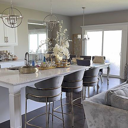- Partial Carpeting, Kitchen Island, Custom Cabinets, Painted Cabinets