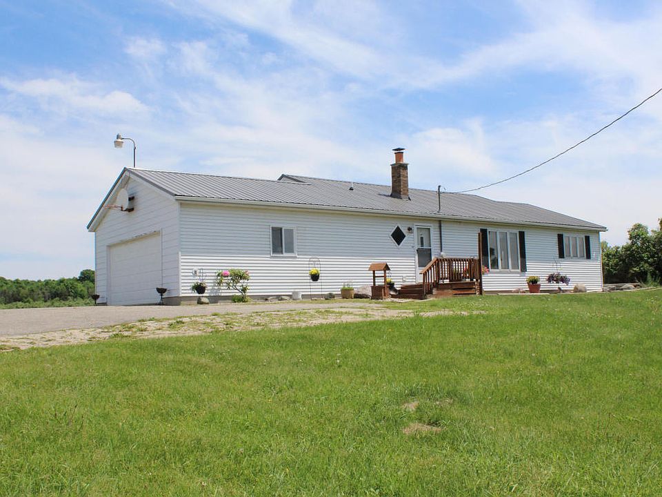 Spectacular setting on 8+ Acres that has 650' bordering 312 Acres of State Land with a pond. Beautiful site to be seen.PRICED per condition, House needs updating everything except New steel roof 2015 and Nice/Newer kitchen.!This property is potentially income producing(barns)/Conventional financing only 54 x 30 barn that has 54 x 16 and 13 x 24 add-on. There are a couple smaller barns as well as great pasture and fences. The home features an open spacious floor plan with gas fireplace in the big living room that walks out to an 8 x 27- 3 season room overlooking the beautiful private acreage(window seals broken/fogged). This home feels big and has lots of storage areas/rooms and closets. Foundation cracks repaired 22 years ago, dry basement. BEHD TOST AUTHORIZATION COMPLETE