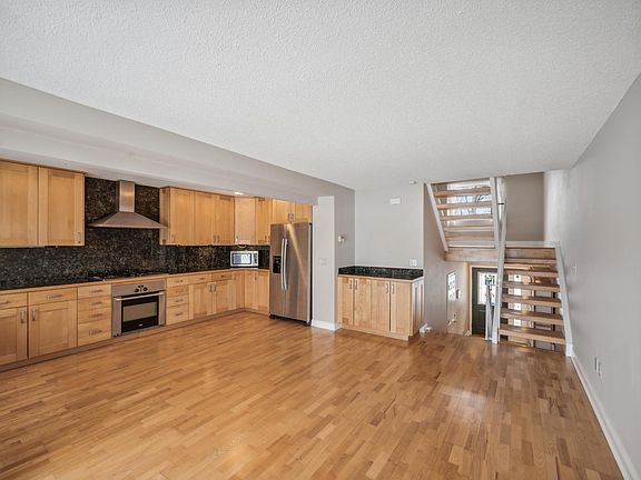 Beautiful updated townhome. Hardwood floors and great living spaces throughout. Spacious kitchen, granite countertops, & room for full size dining table. Upper level master suite with walk-in closet & private full bath. The second floor provides comfortable living room , second bedroom plus full bath. Great location overlooking Armatage Park. New garage door, new basement floor and new basement bath floor, brand new refrigerator (never been used), new outlets and switches, new light fixtures and new sliding glass patio door. Fresh paint.