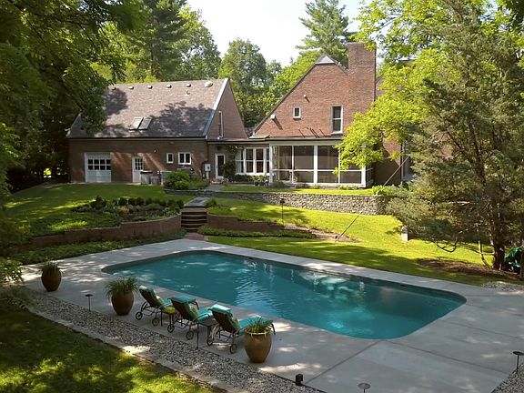 This distinctive home, just eight miles from downtown, yet nestled in some of the most picturesque and private surroundings available in the city is life affirming on a daily basis. Thoughtful design, inspired by the architecture of Hugh Newell Jacobsen (see more in Documents), such as the extraordinary use of natural light via generous glass doors, skylights, and floor-to-ceiling windows make every day easier to enjoy. The windows work both ways so you'll be able to see nature at its best. Nine and ten-foot ceilings throughout plus vaulted ceiling in living room with custom cabinetry, specially lit artwork wall, and dramatic floor-to-ceiling fieldstone chimney with Renaissance Rumford 1500 zero-clearance fireplace. Entertaining here is easy given the feast-for-the-eyes both inside and out. Beautiful hardwood floors refinished in 2010. Well-appointed first floor primary bedroom suite with dressing room containing five double closets and two built in chests. Whirlpool tub, walk-in shower, tall vanities in primary bath. Bedroom adjacent to first floor primary bedroom could be used as a sitting room. Likely the most used part of the house is its completely remodeled chefs kitchen and hearth room with innovative use of gorgeous reclaimed hardwood countertops and barnwood siding combined with natural-feeling textured granite countertops. Tall, elegantly windowed shaker cabinets mixed with shiplap ceiling and subway tile backsplash. Hearth room also has shiplap and custom cabinets with builtÂin desk, drawers, and "tech-garage" where you can hide your printers, scanners, and supplies while they remain conveniently accessible. This space is kept cozy with a gas-log fireplace custom built from reclaimed bricks. Appliances installed in 2010: Wolf double ovens, 6-burner stove, and warming drawer, Subzero stainless fridge/freezer and additional 2-drawer fridge (great for salad fixins, fruit, and kids drinks), Miele super-quiet dishwasher, and KitchenAid 2-drawer dishwasher (to help manage larger events). Eat at the island, bar, the breakfast area, or enjoy the views just outside the kitchen from the screened porch with slate floor overlooking pool. Planning desk, laundry /mud room, and additional half bath off kitchen. Welcoming front foyer has wainscoting and Damask wallpaper. Half-bath off hallway is a showcase all its own with contemporary sink resting on antique cabinet and shiplap walls. Second floor comprised of three bedrooms, each with its own bath. One bedroom is a suite with its own sitting room, ideal for guests or nanny. Partially finished lower level with huge recreation room, full bath, exercise room, three double closets, and wine cellar. Two large storage rooms, one of which is ideally suited to be a serious workshop, photo studio, or other project workspace. Apartment above garage has separate entrance and includes living room, updated kitchen, bedroom, full bathroom, and vaulted ceilings.Two tankless water heaters means you'll never run out of hot water! Four heating and air conditioning systems. Invisible fence.
