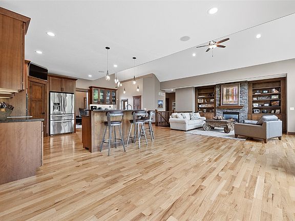 Sunderman built custom home for Jerry Sunderman, himself, so you know the craftsmanship is impeccable. Breathtaking wooded views atop the prestigious hill in Ushers Ridge give an unmatched connection to nature & wildlife. Chef's kitchen with pristine wood flooring & high end appliances is an entertainer's dream with room for a large table, the island seats 6+, and a formal dining room - or office. Sun room & living room both have a gas fireplace. Full LL bar, theater room, huge rec room with gas fireplace. Oversized walk in closets in each bedroom. Wake up to the sunrise in the primary with the comfort of heated flooring in the bathroom with huge spa shower(tankless water heater!), jetted tub & private water closet. This home is not only distinctive, it's concrete safe room & alarm system provide protection and peace of mind. Book your showing now to experience true luxury-living!