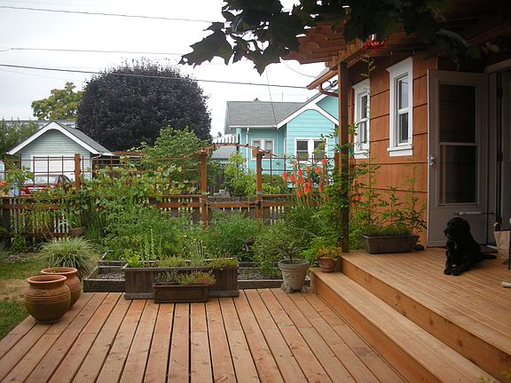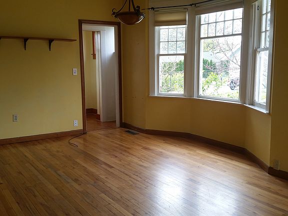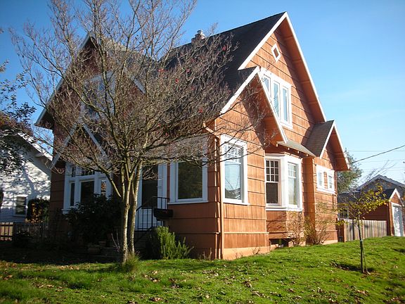 This well-tended 3-bedroom has excellent natural light throughout. Two bedrooms upstairs have walk-in closets, wall to wall carpeting and lots of natural lighting. Dining room includes hardwood floors and classic bay window lighting. Third bedroom is downstairs and can easily be used as a den, play room, or bedroom. Both bathrooms have been beautifully remodeled. The full bath upstairs features a clawfoot tub and separate shower. Half bath on main floor features gorgeous tile and naturally finished wood trim. Kitchen has tons of country charm, and includes original hardwood floors, walk-in pantry with built-in cabinets, gas range, dishwasher, disposal, and central island table for morning coffee and meal prep. Large unfinished basement features full-size washer /drier, utility sink, workbench and plenty of dry, secure storage. Fenced corner lot has large yard and well-maintained landscaping, 5 organic raised garden beds, apple tree, grapes, blueberries, arbors, composter, etc. Great urban gardener property. A large, partially covered deck with built-in benches is an amazing BBQ spot. The lot also includes off-street parking for 2 cars, and a detached 1-car garage that offers partial space for a workshop and garden shed. (Landlord retains some storage space in garage.) Location: Easy access to Trader Joes, Woodstock New Seasons, Reed College, Creston Park & Pool, Mt Tabor, Woodstock Neighborhood, multiple TriMet buslines, and more. 1 pre-screened dog with references allowed with a $500 deposit. Absolutely no cats, no exceptions. No smoking. To avoid spam, I respond only to those who tell me a bit about themselves when inquiring about this lovely home (how many of you are there, do you have pets, why you're moving, etc.), or who call me directly 503-539-6398. Home is occupied, do not disturb tenants.