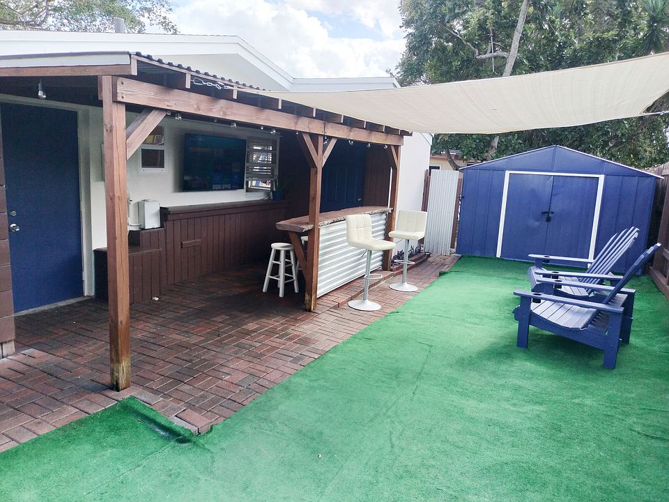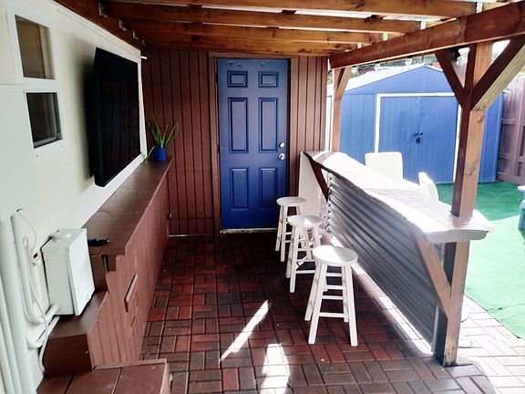 - Exterior features: 10x7 Storage Shed, Internet included in rent, Private Bar
